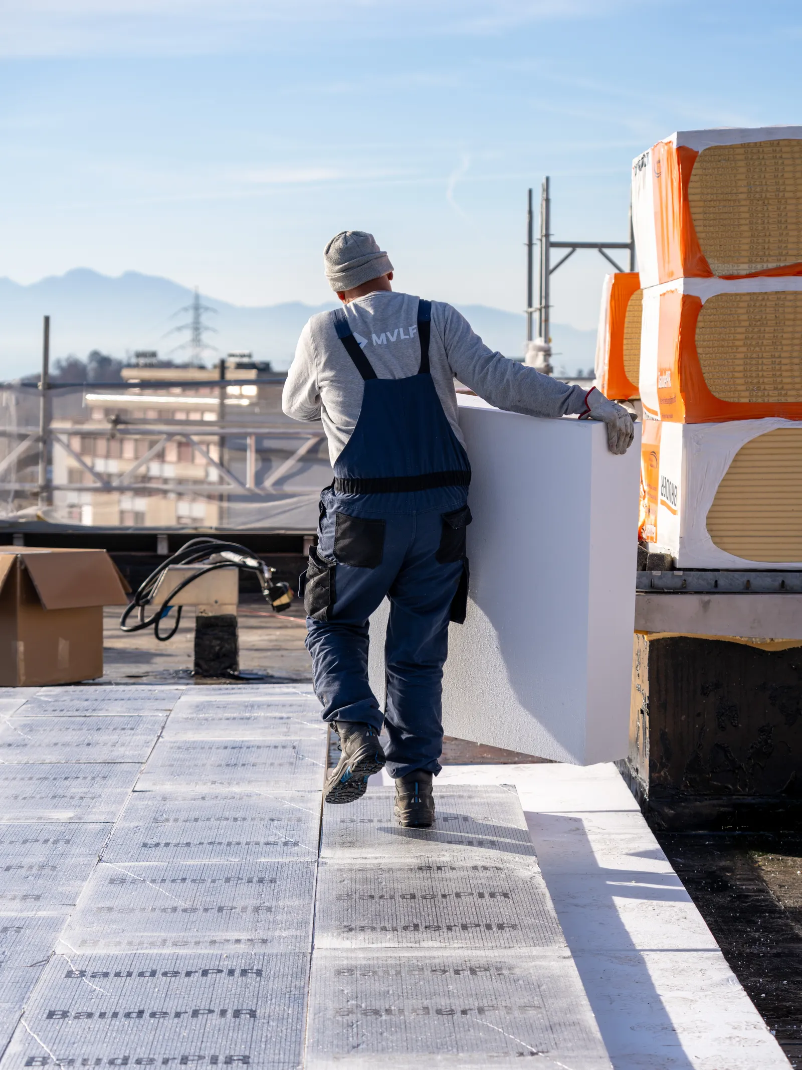 - • Pose de membranes bitumineuses ou synthétiques (PVC, etc.).